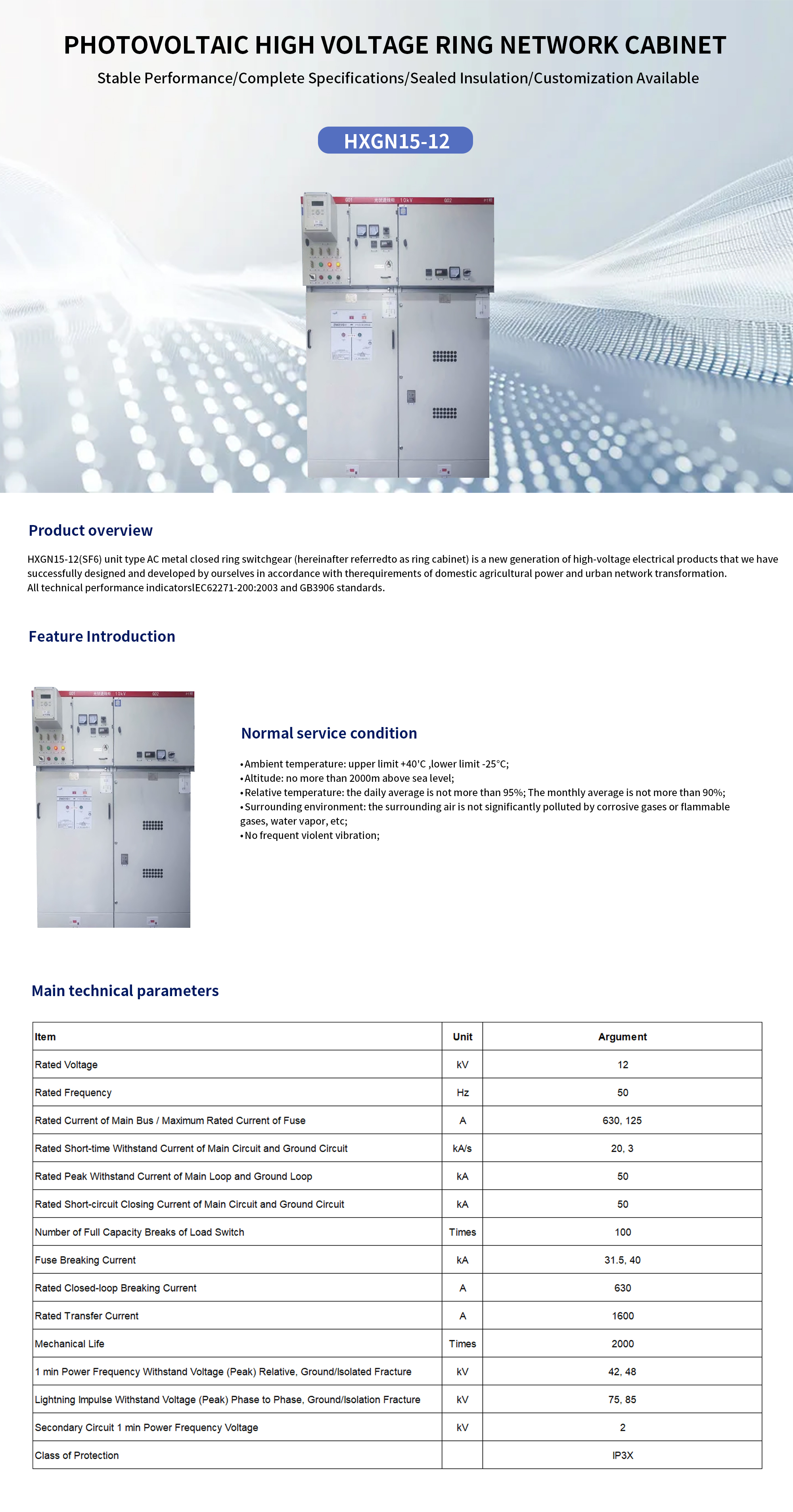 Photovoltaic High Voltage Ring Network Cabinet